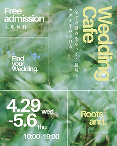 カフェでおしゃべりをするみたいに 結婚式をゆっくりイメージしていけたらいいな そんな想いから生まれた Wedding Cafe Wedding Cafe Roots andでは カウンセリングを中心に 衣装の試着も楽しめます おふたりを紐解いた先に見つかるヒントを元に ふたりらしい結婚式のカタチを探します 〖 Contents 〗 ・プランナーとのカウンセリング ・ドレス・和装の試着 ・ウェディングギフトの展示 ・結婚式の写真展示 ・お写真での会場紹介 ・ご予算・お見積りのご案内 〖cafe menu〗 三重県阿下喜punktオリジナルコーヒー すりおろしりんごジュース punktお菓子 心に残っている思い出 大切にしてきたこと これからのこと そんなお話の中には おふたりらしさの“原点”がそっと隠れています Wedding Cafe “Roots and”では 今のおふたりの気持ちを 無理のないペースで ゆっくり紐解いていきます お話ししたいことだけで大丈夫です おふたり歩んできた時間から紡がれていく ドレスやブーケ、結婚式を行う会場… ドレスや和装に袖を通したり ウェディングアイテムを見ながら 少し先の未来を思い描いてみる そんな時間を一緒に過ごせたら嬉しいです かしこまった準備や 特別な想いは必要ないです 今のままのお気持ちで気軽にお越しください 【開催日】 4月29日(水) - 5月6日(水) 10:00- / 14:30- / 17:00- 所要時間:約2時間 *時間は日程により異なります 各日程でご確認をお願いします また、ご都合に合わせて時間調整が可能な場合もございますので お気軽にお問い合わせくださいませ